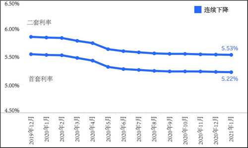 繼2020年12月略降1BP(基點,即0.01個百分點),全國首套房貸款利率再降1BP。