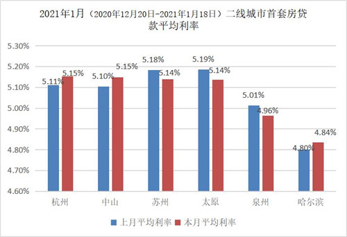二線城市房貸利率上漲的城市中,中山、杭州和哈爾濱的漲幅較大,分別為5BP、4BP、4BP。