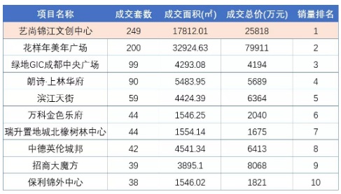 △成都商辦市場11月SOHO備案成交套數前十項目榜單(數據來源:房聯)