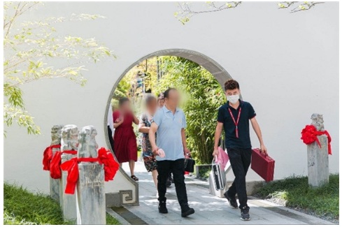面對(duì)特殊的疫情環(huán)境,建發(fā)房產(chǎn)采用預(yù)約制交房,一站式手續(xù)辦理,讓交付現(xiàn)場(chǎng)井然有序。業(yè)主剛出車(chē)門(mén),客服禮儀一路引導(dǎo)至售樓處門(mén)口。紫銅大門(mén)邊恭候已久的置業(yè)顧問(wèn),為業(yè)主送上鮮花,踏過(guò)消毒地毯、測(cè)溫、登記井然有序。