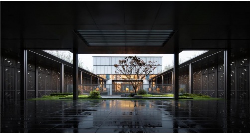 設計師將其統納入詩性東方的美學建制中,“以詩為用,以用為詩”,設計沿襲美好詩性緘默的情境表達,以中軸對稱、方正秩序、園林遞進的東方儀范,點染國際藝術審美,歸呈構設一處涵雅靜心之所——永豐樂境。