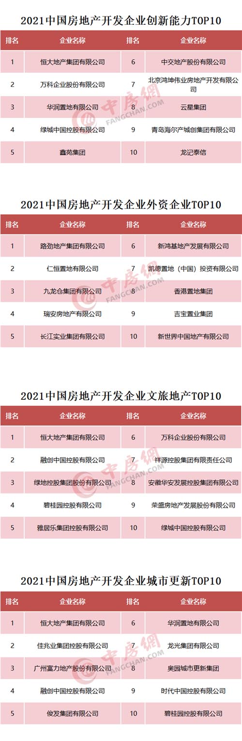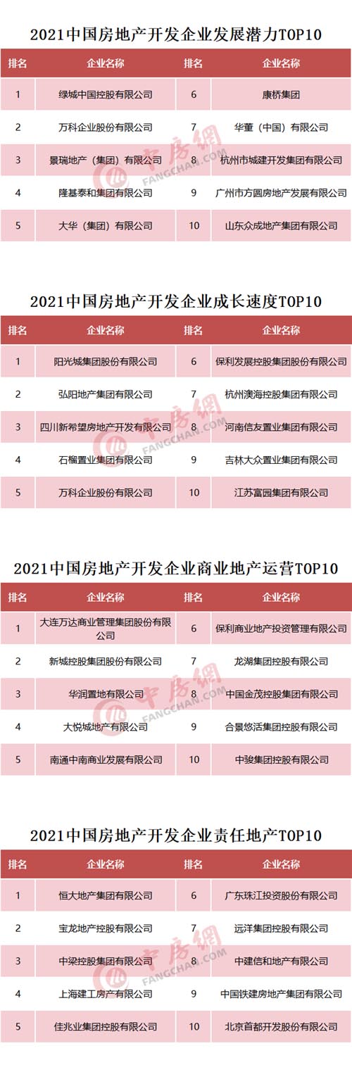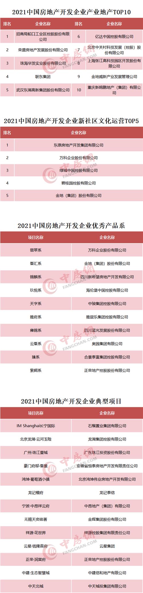 附:2021中國房地產開發企業綜合實力TOP500及專項測評成果