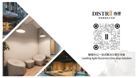 Distrii辦伴成立于2015年,是敏捷辦公一站式解決方案引領者。Distrii辦伴由世界500強企業前執行副總裁、總建筑師胡京博士創立,新加坡城市發展集團、合福資本、君紫資本與華住酒店集團共同注資,多位來自商業地產、互聯網、智能科技等領域的高級管理合伙人加盟。