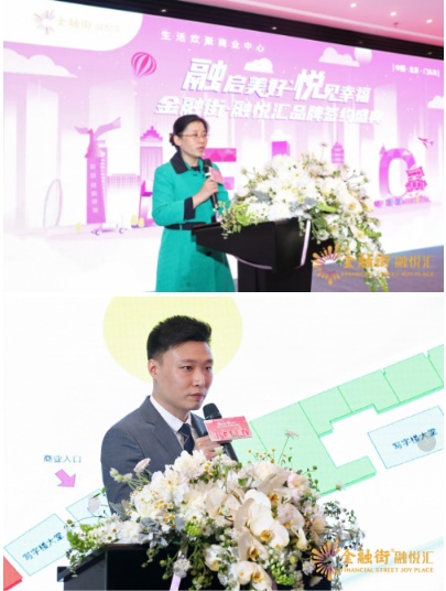 金融街(北京)置地有限公司副總經理鮑曉菁女士、金融街·融悅匯招商負責人楊子建先生和入駐品牌代表出席并發表了重要致辭,共同見證金融街·融悅匯與好利來、新希望教育、木玩世家、華為的強強聯手。