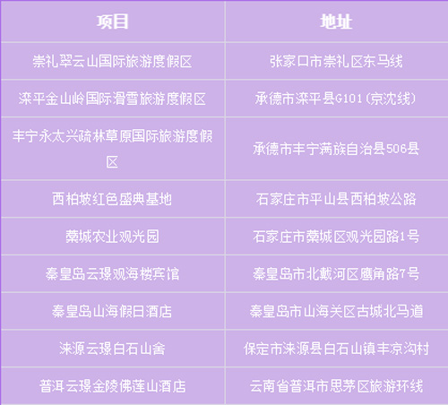 冀旅薈會員在旅投集團下列酒店、景區內使用權益卡行權消費。定向行權范圍如下: