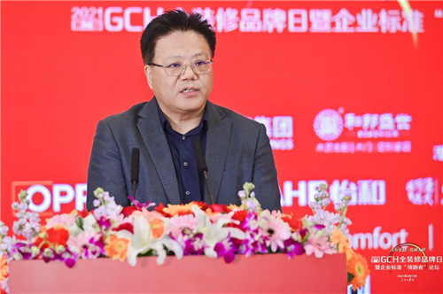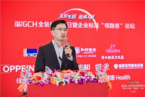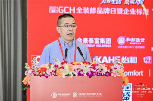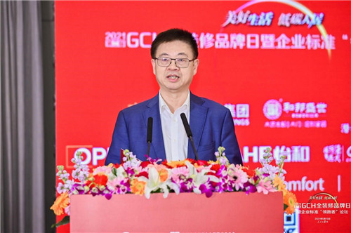 中國標準化研究院副院長邱月明先生發(fā)表了致辭,他提到,本屆GCH全裝修日暨企業(yè)標準"領跑者"論壇恰逢"中國品牌日",更需要針對領跑標準開展討論。各項政策、意見和文件都為深入實施企業(yè)標準"領跑者"制度提出了新的要求。建筑業(yè)從粗放式發(fā)展向綠色低碳高質(zhì)量發(fā)展邁進,全裝修企業(yè)標準"領跑者"能引領行業(yè)高質(zhì)量發(fā)展,加快行業(yè)轉(zhuǎn)型升級,助力行業(yè)實現(xiàn)碳中和。