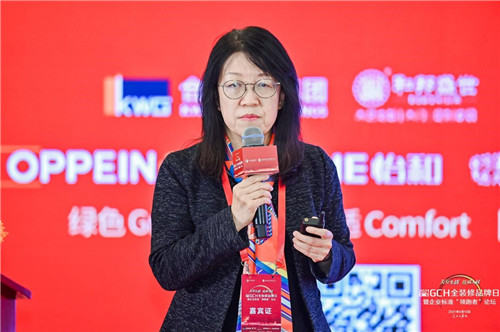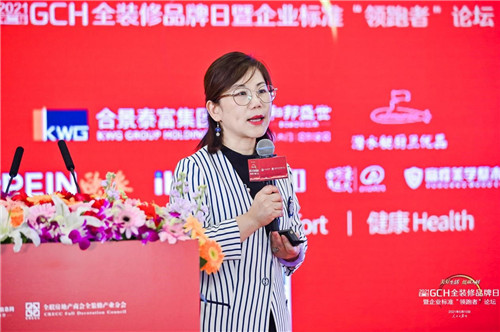 隨后,全聯(lián)房地產(chǎn)商會全裝修產(chǎn)業(yè)分會秘書長陳忠莉女士為我們帶來"標準領跑推動建設全裝修美好生活 《住宅全裝修評價標準》為品牌賦能"的主題演講,她從建筑業(yè)能耗、全裝修市場、標準領跑促全裝、GCH鏈接美好四個方面展開分享。目前建筑業(yè)面臨著產(chǎn)業(yè)鏈太長、頑疾通病太多等問題。全裝修市場的發(fā)展要實現(xiàn)品質(zhì)回歸。