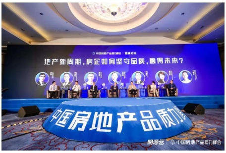 圓桌論壇環節,主持人明源地產研究院工程客服分院院長唐亮,與藍綠雙城控股集團副董事長顧建明,越秀地產總經理助理、華南工程聯盟主席王榮濤,旭輝集團總工程師、上海工程聯盟主席崔曉強,中國金茂HSE總監李宗照,融信集團客戶關系中心總經理、房地產客戶關系聯盟主席丁樹俊,新城控股集團品牌與公共事務中心常務副總吳曉敏7位嘉賓,圍繞“地產新周期,房企如何堅守品質,贏得未來”發表自己的觀點。