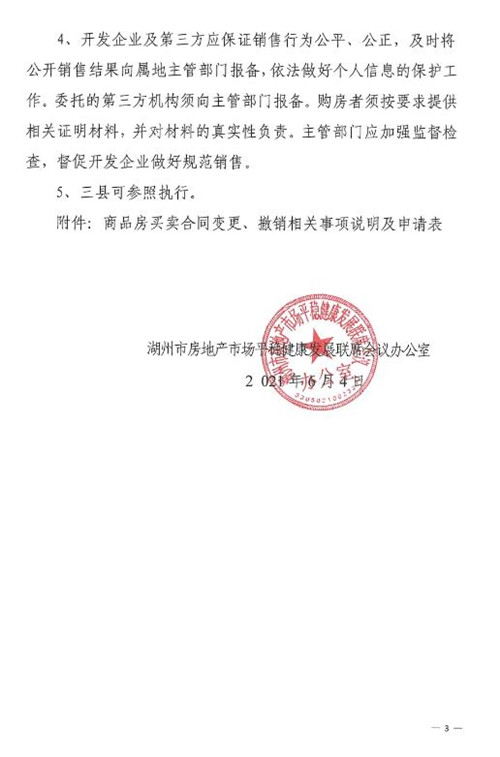 房訊網(wǎng)訊 6月4日,浙江省湖州市住房和城鄉(xiāng)建設(shè)局發(fā)布《關(guān)于進(jìn)一步加強(qiáng)中心城市商品住房合同管理有關(guān)事項(xiàng)的通知》。《通知》明確,新建商品住房在辦理合同網(wǎng)簽后,經(jīng)買賣雙方協(xié)商一致,除在父母、配偶、子女之間更名外,其他情形不得更名。實(shí)行公證搖號(hào)銷售的項(xiàng)目,不得更名。