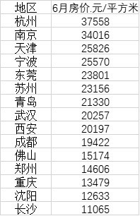 值得注意的是,9個單價超過2萬元/平方米的新一線城市中,前7個均來自東部沿海地區。此外,來自中西部的武漢和西安單價分別達到了20257元/平方米和20197元/平方米。