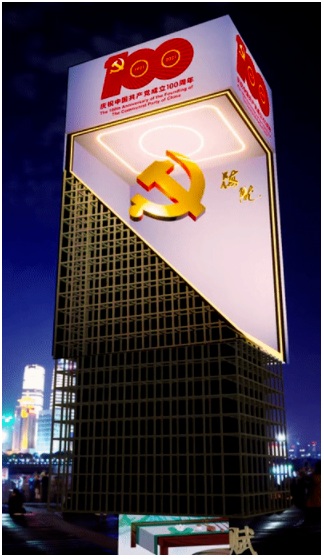 企業創始人粟慶作為一名擁有20多年黨齡的黨員,值此中國共產黨建黨百年華誕之際,積極響應黨委號召,參與到建黨100周年的宣傳活動中,貢獻自身企業的創意想法與先進技術,結合上海中庚·漫游城及其他位置大屏,打造了慶祝建黨100周年主題的內容生動、立體,更富有視覺沖擊力,更易被大眾喜愛與傳播的裸眼3D視頻。