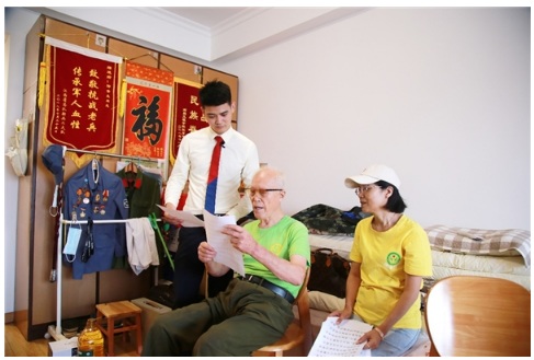 在錄制講解詞時,也有老兵對當下的年輕人留下誠摯寄語。“我們把年幼交給了父母,把青春交給了國家,”98歲的抗戰老兵張文輝的話語令人動容。他在1937年參加八路軍,參加過著名的百團大戰、林南戰役、黃崖洞軍工廠保衛戰等,至今身上還殘留兩個彈片。他講解的是沈陽審判日本戰犯法庭舊址陳列館。一個個在抗日戰爭勝利后在中國接受審判、認錯、接受改造的日本戰犯故事,在張文輝滄桑而飽含熱情地講述中,讓人忍不住感慨這場偉大勝利的來之不易。