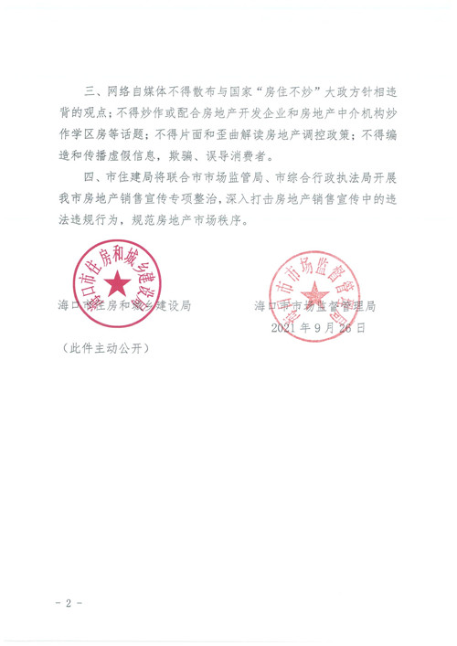 9月26日,海口市住建局和海口市市場(chǎng)監(jiān)管局聯(lián)合下發(fā)《關(guān)于規(guī)范房地產(chǎn)銷售宣傳的通知》,就規(guī)范海口市房地產(chǎn)銷售宣傳、防止以學(xué)區(qū)房等名義炒作房?jī)r(jià)作出規(guī)定,明確房地產(chǎn)中介機(jī)構(gòu)在居間代理買賣過程中不得以學(xué)區(qū)房名義掛牌二手房。