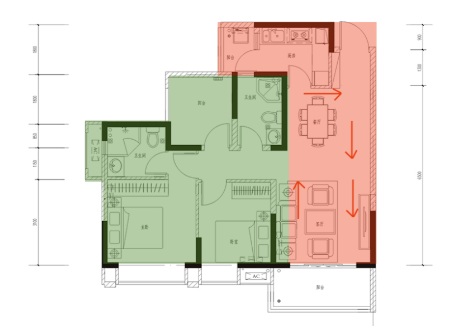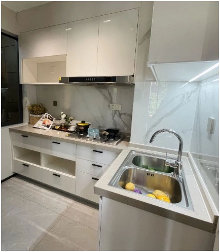 在空間布局上,將居家動線的設計優化整合:玄關入門,折身即可進入廚房;餐客廳相連,一日三餐與休閑時刻自由實現。