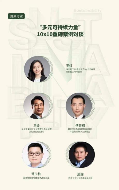 “10x10”企業案例代表也來到現場,在瑞安新天地商業管理-辦公總經理及創智天地項目總王紅的主持下,一場“多元可持續力量”的圓桌討論展開。