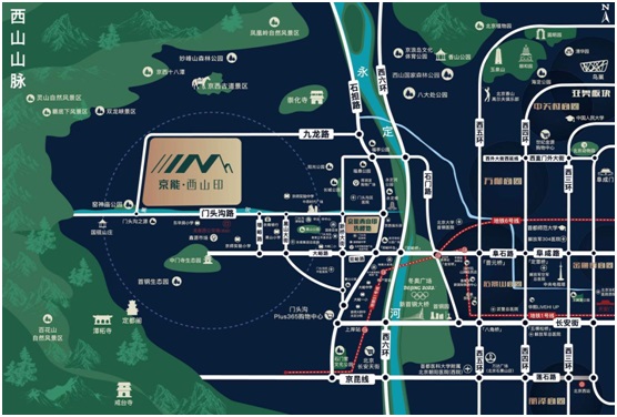 京能•西山印位于北京市門頭溝區龍泉鎮門頭溝路47號。門頭溝區作為北京生態涵養區之一,是城市的“大氧吧”和“后花園”,自然環境得天獨厚,空氣負氧離子含量高,2020年入選第二批國家全域旅游示范區,近日又成功入選“國家森林城市”。區域規劃了“一廊、一環、兩區”,形成藍綠交織、山水共融的綠色空間格局,成為難得的宜居之地。項目周邊多個公園環繞,可與自然和諧對話。