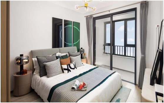 項目采用二星級綠色建筑設計標準建造,為6-11層洋房,一梯兩戶,南北通透,全裝修交付,個人產權份額占比為85%。銷售均價29500元/㎡。