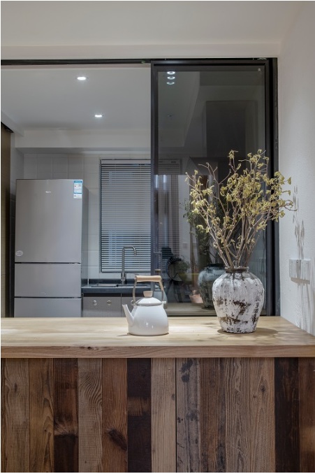 廚房設(shè)計(jì)延續(xù)原木質(zhì)調(diào)的家居搭配,加之簡(jiǎn)約卻不簡(jiǎn)單的擺設(shè),呈現(xiàn)出一種雅致淡泊的氣氛,給人一種舒適輕快的感覺。