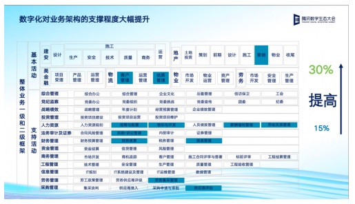 目前,陜建集團已通過騰訊云搭建起了主數據管理平臺,實現了各業務信息系統的數據集成治理,并將進一步構建數據湖和大數據分析系統。值得一提的是,其業務數字化成效也在過去一年實現了大幅提升,現已有30%的集團業務實現了信息系統支撐。
