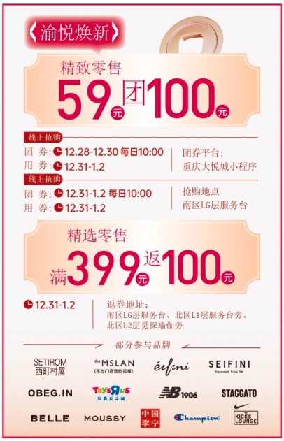 這一年,每一件“渝”悅之事,都在城市蔓延。而向來是美好生活運營商的重慶大悅城,也帶著一份初成長的禮物,在歲末年初與大家一起“渝”悅——12月31日至1月2日,重慶大悅城在1周年慶來襲,引百萬福利、禮贈山城,邀請市民們點擊查閱!