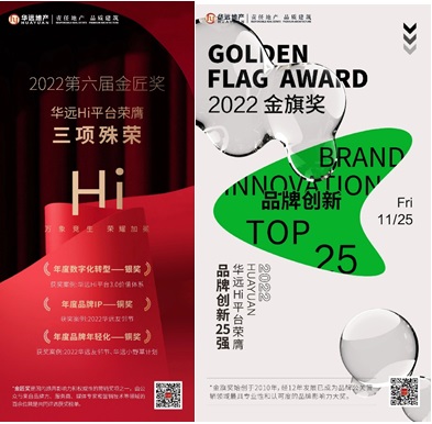 △2022年華遠Hi平臺榮獲金旗獎、金匠獎頒發(fā)的多個榮譽