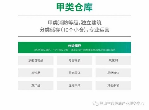 生物醫藥企業生產研發過程中需要使用化學試劑,根據《深圳市工貿企業使用危險化學品儲存場所安全管理指引》,企業廠房內設甲類庫為“危化品中間倉”,只能存放一晝夜生產所需的量。因各企業管理規范和安全意識參差不齊,化學試劑儲存安全隱患大且面臨頻繁檢查。中城生物醫藥產業園按甲類消防等級建設200㎡獨立建筑,設10個小倉,分類儲存,專業化運營。