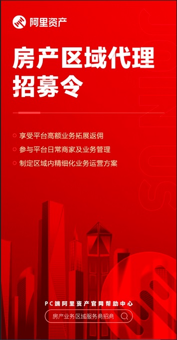 為了更好發展阿里資產-房產類機構在全國各區域內的深耕作業能力,提升以省/市為單位的區域內垂直規;l展,阿里資產擬開展針對于全國各省/市“房產類機構區域代理服務商”招商(以下簡稱區代)。