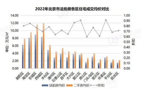 1月,北京市法拍房住宅成交均價5.06萬/㎡,環比2021年12月下調0.29萬/㎡,平均折扣為市場價的7.8折,連續6個月維持在8折以下低位運行,共計為購房者節省12.57億元的購房差價,入場空間巨大。