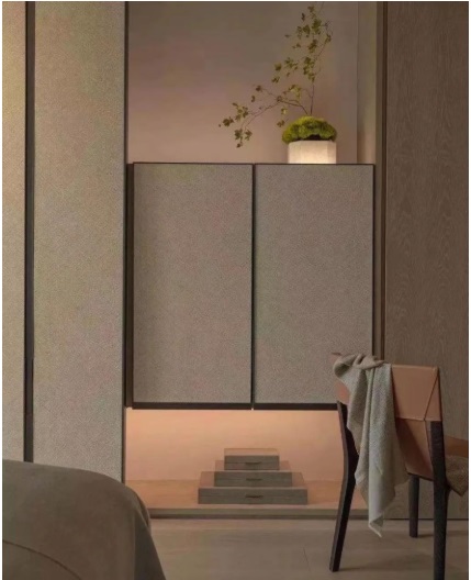 縵合室內各個廳和房間,都包含有大量的隱形收納空間,表面是美觀的木飾面鑲嵌著珍寶閣,打開柜門,卻又有大量的收納空間,使空間兼具美觀與實用性。