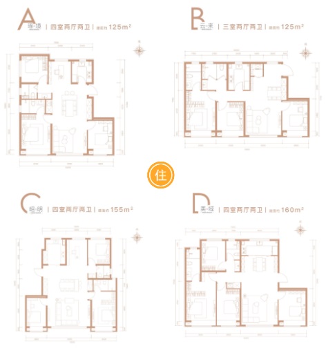 龍樾合璽125平方米四室兩廳兩衛的戶型,正好可以滿足6口人的生活需求,入戶設有玄關、鞋柜、換鞋區域,增加回家儀式感。臥室設計更注重隱私,套間概念顯著,衣柜、衣帽間和衛生間一體化配套完善。整體格局方正、動線合理。而同為125平方米的三室兩廳戶型,南向面寬可達13.1米,客廳和3個臥室全部朝南,面寬進深比1.69,在北京太陽照射和南北季風的影響下,采光通風效果極好。
