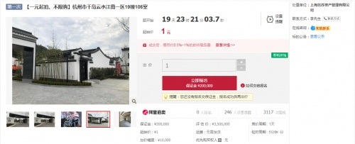 阿里資產520投資節,上架的都是一等一的“狠貨”,且品類繁多,堪比房產屆的“雙11”!其中,涵蓋了司法房、商業房、開發商直供房產等,想在近期投資置業的朋友們,要盯緊了。除了品類值得說道,玩法也很硬核。四套超級紅盤,只要1元起拍。對象是兩套不限購的千島湖臨湖中式合院,以及兩套出自綠城的精裝商住。
