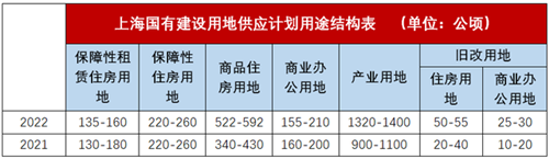 根據《供應計劃》,2022年上海涉住宅用地計劃供應面積為927-1067公頃,較2021年的供應計劃基數增加30.6%、上限增加17.3%。
