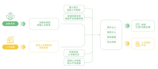 除此之外,還會結(jié)合往年校招數(shù)據(jù)復(fù)盤今年校招留存情況和外部市場環(huán)境,綜合評估整體校招需求,并且基于校招需求精準(zhǔn)制定具體校招實施方案和人才培養(yǎng)計劃,以確保校招項目的需求貼合業(yè)務(wù)實際,且能快速賦能業(yè)務(wù)、滿足人才需求。