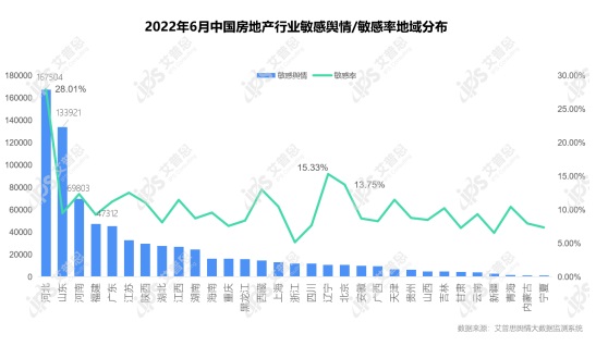 2022年6月中國房地產行業敏感輿情/敏感率地域分布