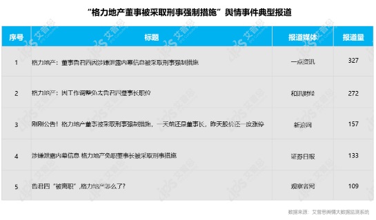 “格力地產董事被采取刑事強制措施”輿情事件典型報道