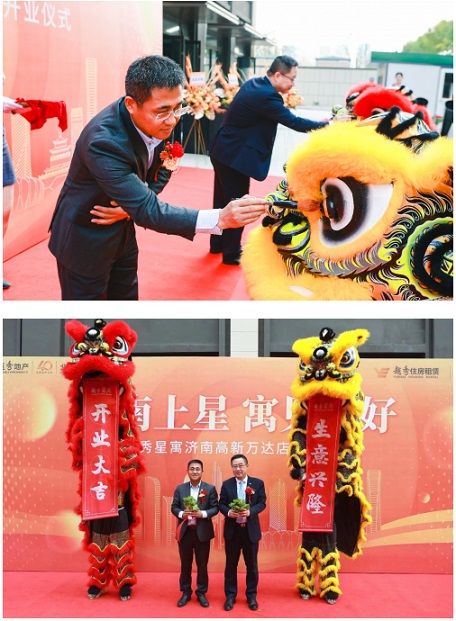 開業(yè)活動(dòng)的高潮部分是熱烈的舞獅表演。在眾人的歡聲雷動(dòng)中,兩只雄獅騰躍而出為大家?guī)砹艘粓?chǎng)熱烈的表演,預(yù)兆著越秀星寓濟(jì)南高新萬達(dá)店的紅紅火火。在禮炮聲與掌聲相伴下,越秀住房租賃兼越秀星寓公司副總經(jīng)理(主持全面工作)余信遠(yuǎn)、越秀地產(chǎn)濟(jì)南區(qū)域相關(guān)負(fù)責(zé)人楊映龍,攜手公司其他領(lǐng)導(dǎo)共同為越秀星寓濟(jì)南高新萬達(dá)店進(jìn)行開業(yè)剪彩,正式揭幕越秀星寓濟(jì)南高新萬達(dá)店。