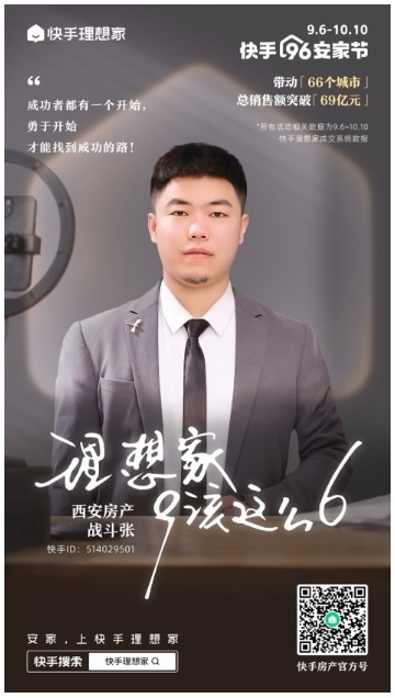 在剛剛結束的快手96安家節,不僅平臺吸引了超460萬人參加,帶動66個城市的超900個樓盤成交,總銷售額突破69億,張勃也實現了單月GTV超6470萬的成績突破。活動還打破了傳統市場中對直播賣房的認知壁壘,而張勃也給自己的未來定下了更高的目標。