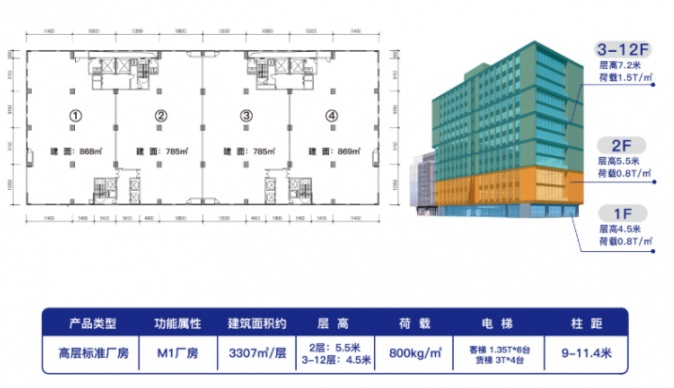 建面約780-3300㎡,7.2—5.5—4.5米層高 ,800kg/㎡高荷載承載空間,打造高品質創新產業空間,讓企業高效、安全生產的同時,更提升企業形象,助力企業未來發展。