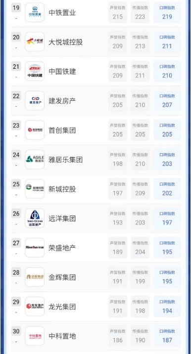 本期榜單為2022中國房地產品牌線上口碑指數年度排行榜。