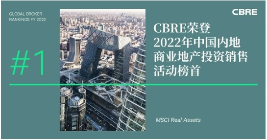 CBRE世邦魏理仕榮登2022年中國內(nèi)地商業(yè)地產(chǎn)投資銷售活動榜首