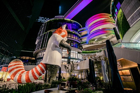 位于成都知名交子公園商圈核心區域的成都招商大魔方,是去年全新開業的項目,也是招商商管在成都打造的第一個特色商業項目。項目總建筑面積約112萬平米,涵蓋演藝中心、城市級購物中心、超甲級寫字樓、豪華公寓、朗廷酒店、高端住宅六大業態,以“城市潮玩新引力”為定位,設置了科技城市生長樹、亞馬遜森林瀑布、魔方之心、巨幕裸眼3D屏、空中天際跑道等“五大沉浸式特色空間場景”。
