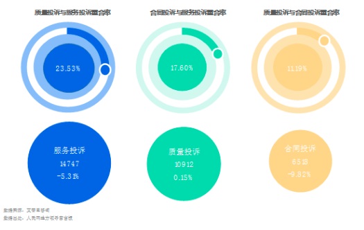 2023年第二季度,質量投訴與服務投訴重合率23.53%,較去年同期下降5.91%;合同投訴與服務投訴重合率17.60%,較去年同期下降6.20%;質量投訴與合同投訴重合率為11.19%,較去年同期下降17.30%。