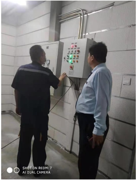 雨過天晴后,物業人員在巡視項目的設備設施。