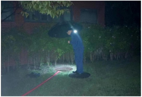 工程人員正在進行夜間巡視,及時排查暴雨后的安全隱患。