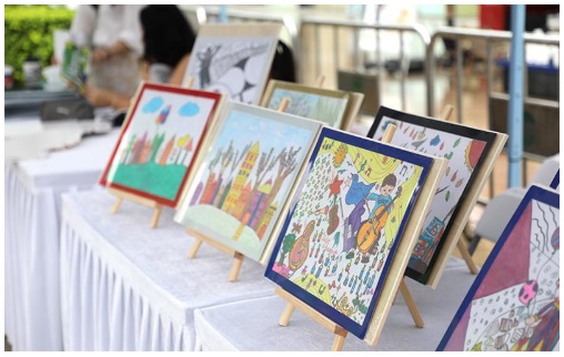 決賽現場,特別設置義賣市集攤位和募捐環節,星河智善生活集團向雨燕殘疾人關愛事業發展中心捐贈50個書包、50份文具套裝及水彩筆和多個玩偶,同時將活動中募集到的書籍、玩偶等物資一并捐贈,為更多的小朋友送去一份快樂。音樂溝通彼此,我們為愛相聚!