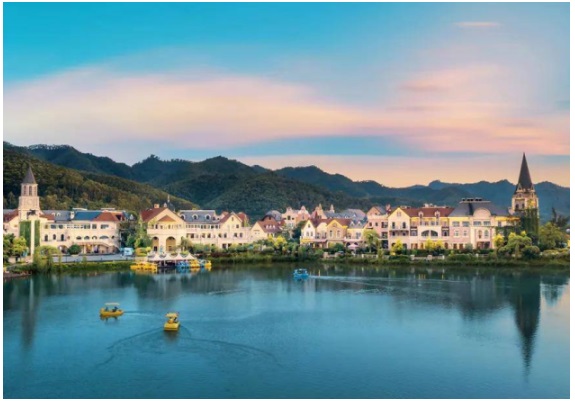 鷺湖安納希小鎮占地面積約35畝,以被譽為“阿爾卑斯山的陽臺”的法國安納希小鎮為藍本,四周圍繞的湖光水色、青黛色的遠山、近處的綠樹繁花,構成一幅世外桃源般的美景。在250m長的風情街上,打造度假區的購物中心、餐飲中心、游客集散和服務中心。