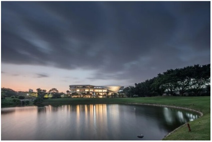 用地一側為天然水道,自然環境優美,建筑順地勢而起,與高爾夫球場綠茵完美結合。建筑用現代化的空間語言,充分利用場地360度景觀資源,通過設計回歸自然,建筑外觀舒展、柔和、通透、宜人,層次豐富。