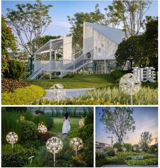 美的置業展廳及其附屬的公園作為城市公共空間的重要一環,是美的置業對外展示企業品牌的重要窗口之一,這個窗口一方面展示著美的置業多業態的經營實力以及智能化的核心產品內核,另一方面作為公共開放公園回饋城市,為城市居民提供了高質量的城市開放空間。