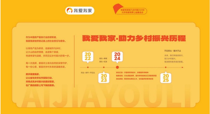 我愛我家始終堅持企業發展與社會責任并重,以“激發每個人、每個家庭、每個城市關于家的更美好向往”為使命,將繼續發揮行業引領與示范作用,通過產業幫扶、產品幫扶、公益幫扶等形式助力鄉村振興,為創造社會價值、增進社會福祉,締造美好生活持續貢獻企業力量。