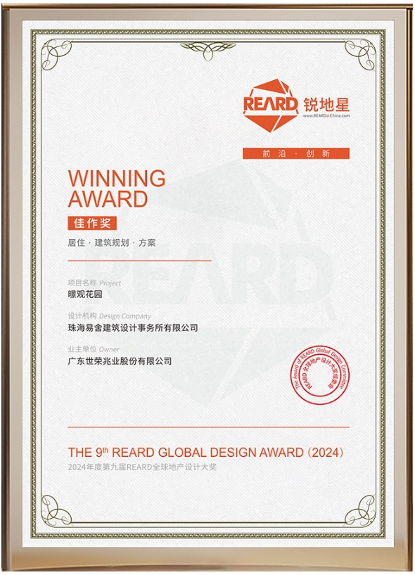 國際地產設計領域再傳佳音,由廣東世榮兆業股份有限公司開發的世榮暻觀花園項目在2024年第九屆REARD全球地產設計大獎中榮獲“佳作獎”。這是繼今年上半年世榮萬達廣場項目榮獲TITAN房地產大獎“白銀獎”之后,世榮兆業開發的項目再次以其卓越的設計理念和建筑品質,贏得國際級的認可與贊譽。